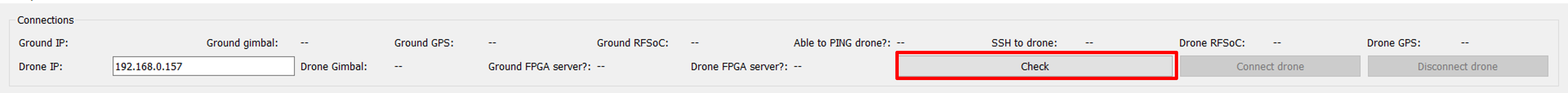 If the ping and SSH requests to the drone are answered, the Connect drone button will become available.