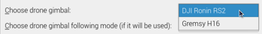 - Choose the drone gimbal from the available options: