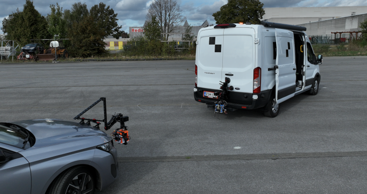 The RX was located in the vehicle on the right side of the figure (Ford Transit), the TX was located in the vehicle on the left side of the figure (Peugeot). Each node had a gimbal that was mechanically steered to a desired angle. Both gimbals were rotated only in their yaw axis. We denote \(\alpha_{TX}\) , the yaw angle of rotation of the gimbal at the TX. Equivalently, we denote \(\alpha_{RX}\) , the yaw angle of rotation of the gimbal at the RX.