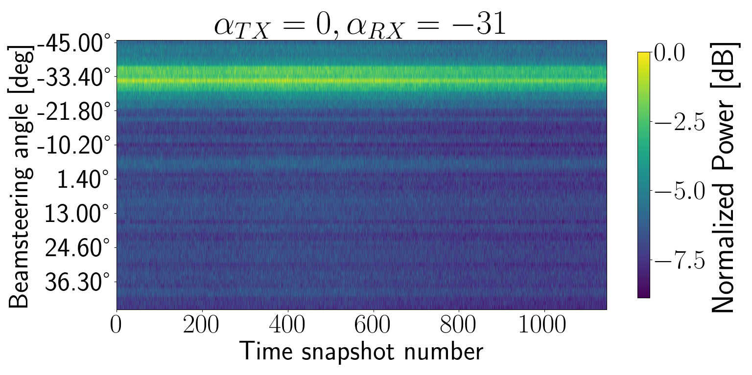 Below are shown the Power Angular Profiles over time for the measurements done with the scenario described above, when both gimbal yaw angles were moved to specified values.